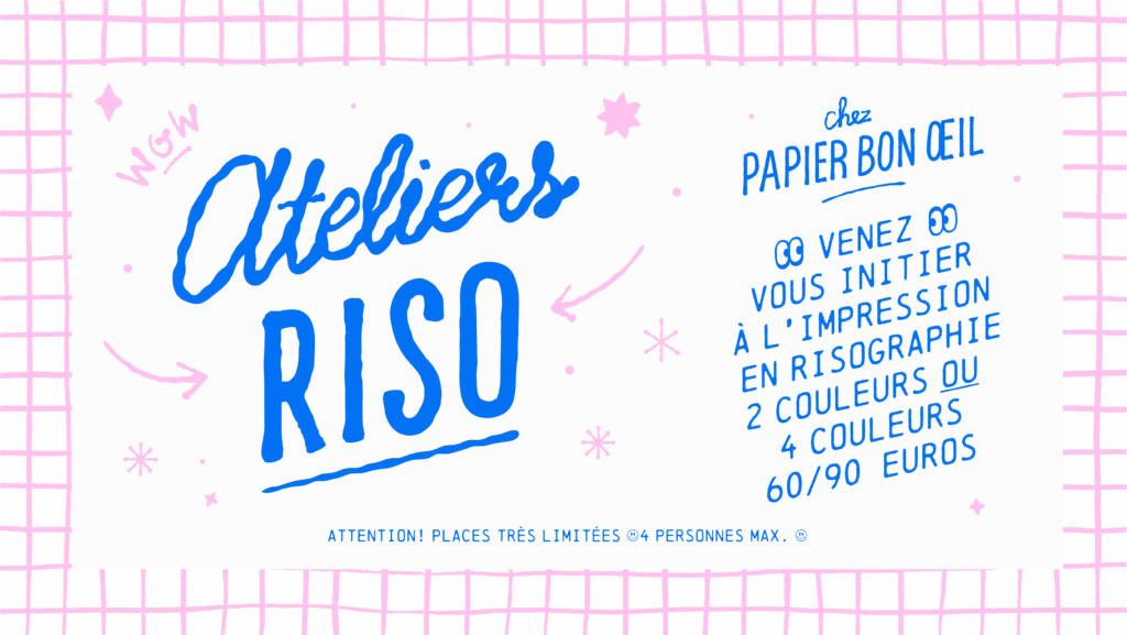 Et surtout, Nous vous proposons et de vous former à l’impression RISO via nos workshops et de venir imprimer vos projets créatifs de manière autonome et à des tarifs préférentiels.